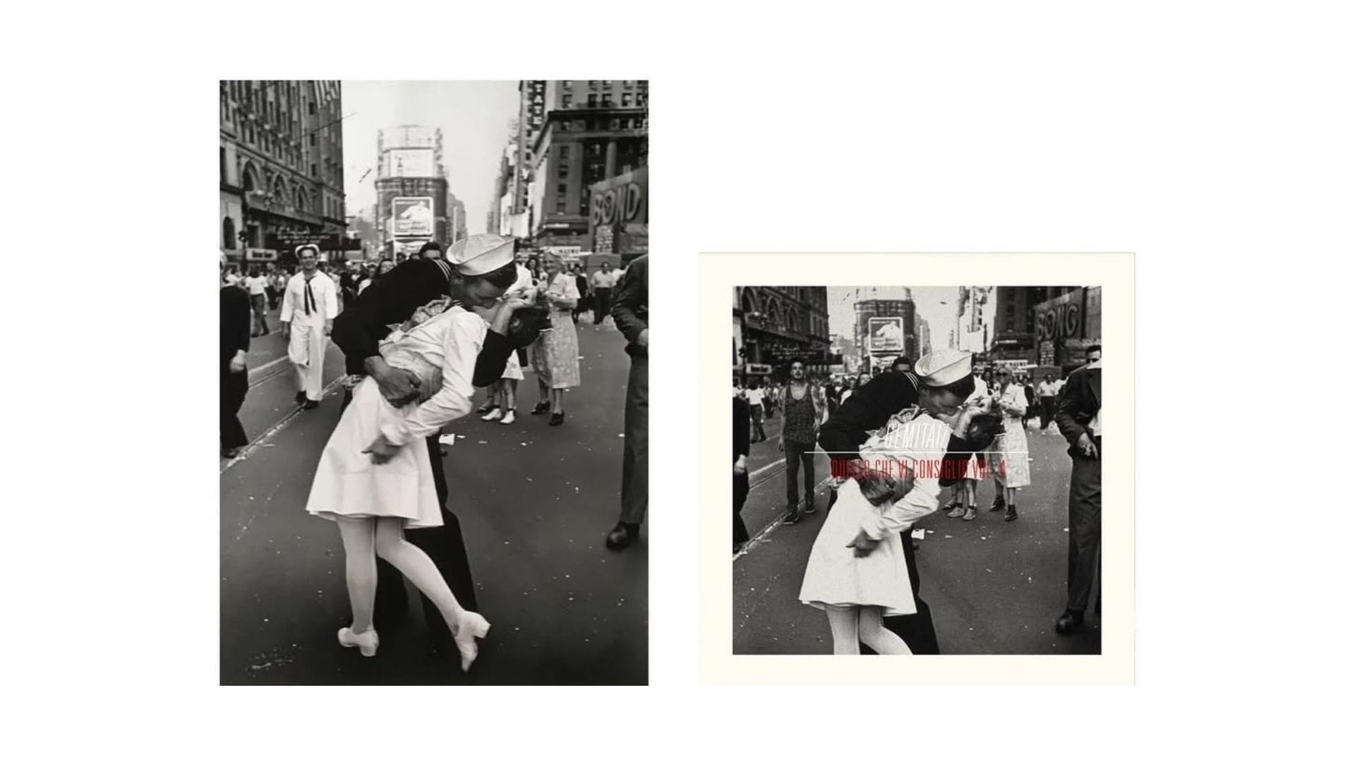 La copertina di QVC4 di Gemitaiz si ispira al celebre scatto di Alfred Eisenstaedt che ritrae il bacio tra un marinaio e un’infermiera a Times Square, simbolo dei festeggiamenti per la fine della Seconda guerra mondiale.