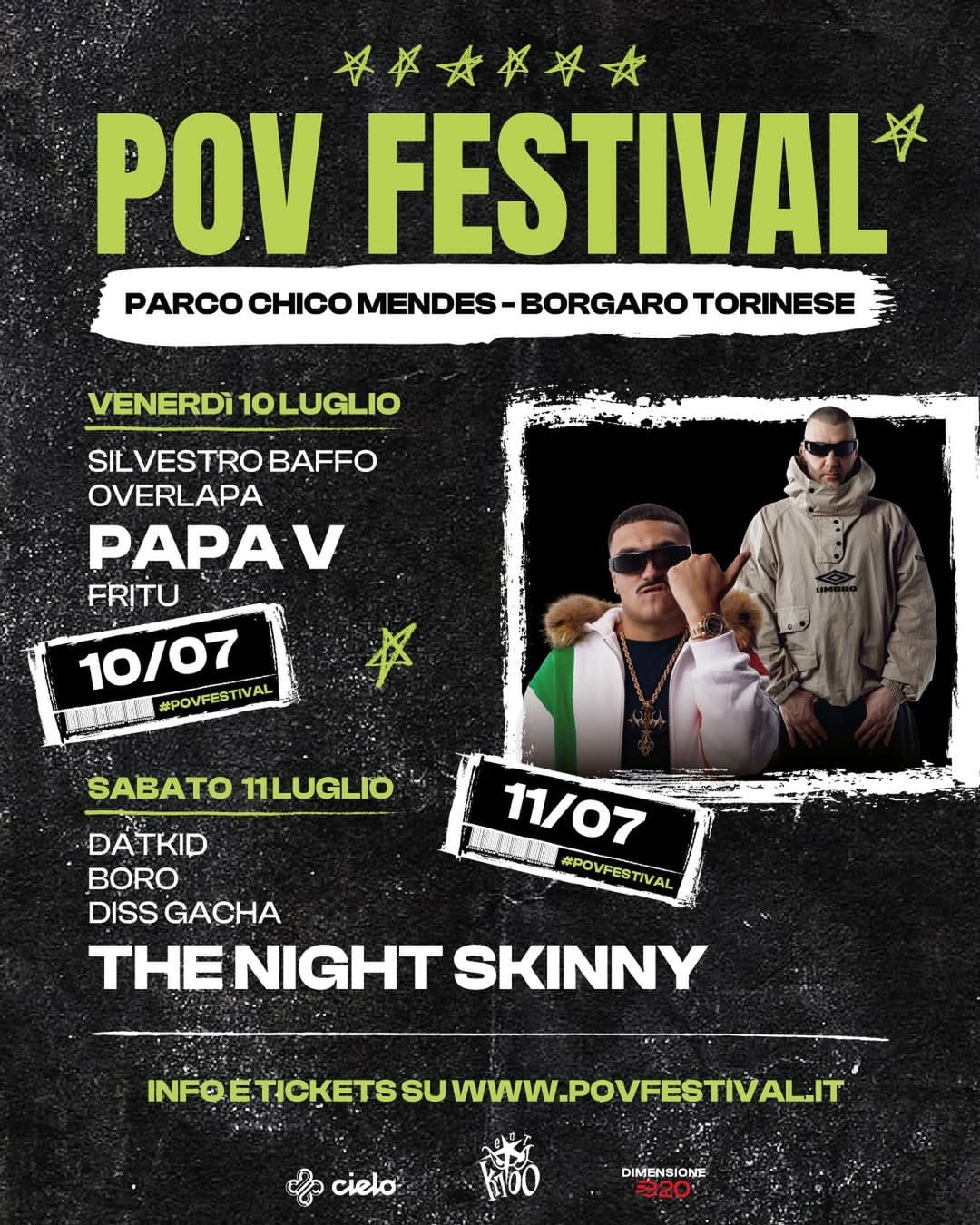 Il POV Festival torna nel 2026 con tre giorni dedicati a rap, trap e cultura street. L’appuntamento è dal 10 al 12 luglio al Parco Chico Mendes di Borgaro Torinese, che per l’occasione verrà trasformato in un’arena urban da circa 4.000 mq.